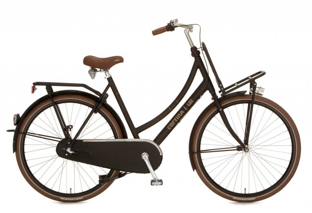Cortina omafiets 28 pulgadas U4 Transporte mate negro con los engranajes y portaescaleras