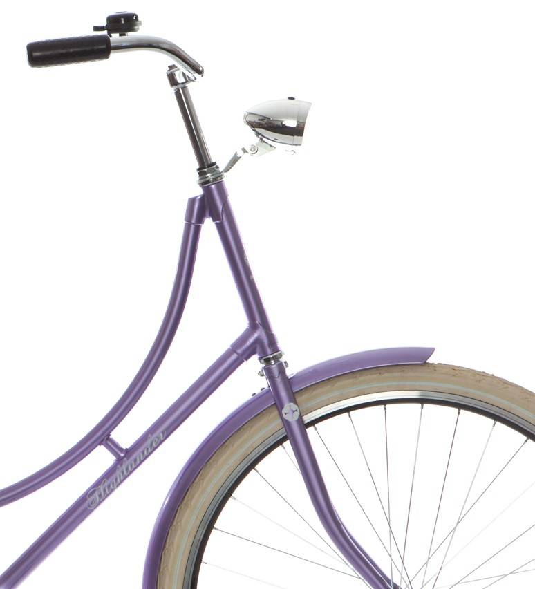 Leuke omafietsDe Highlander omabike is een supermoderne omafiets voor trendy dames. Dit exemplaar met zijn paarse/lila frame en bloemenprint op de jasbeschermers en kettingkast ziet er zeer opvallend uit. De witte banden, zwarte handvatten en het zwarte zadel maken het plaatje helemaal compleet. Met deze omafiets van Omafiets.nl valt u vast en zeker op!