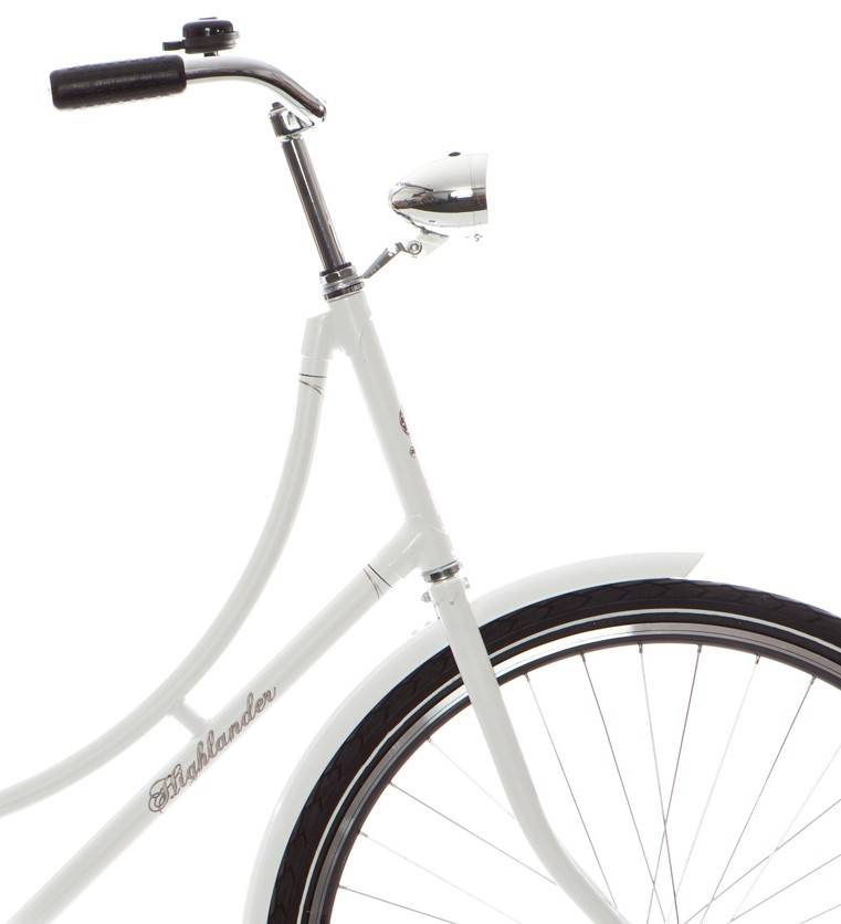 O Highlander é um super modernos omafiets omabike e também um outro muito sólido. Com o seu quadro branco e preto contrastando sela, apertos e pneus, ele parece muito na moda. Este omafiets de Omafiets.nl você cair definitivamente no!